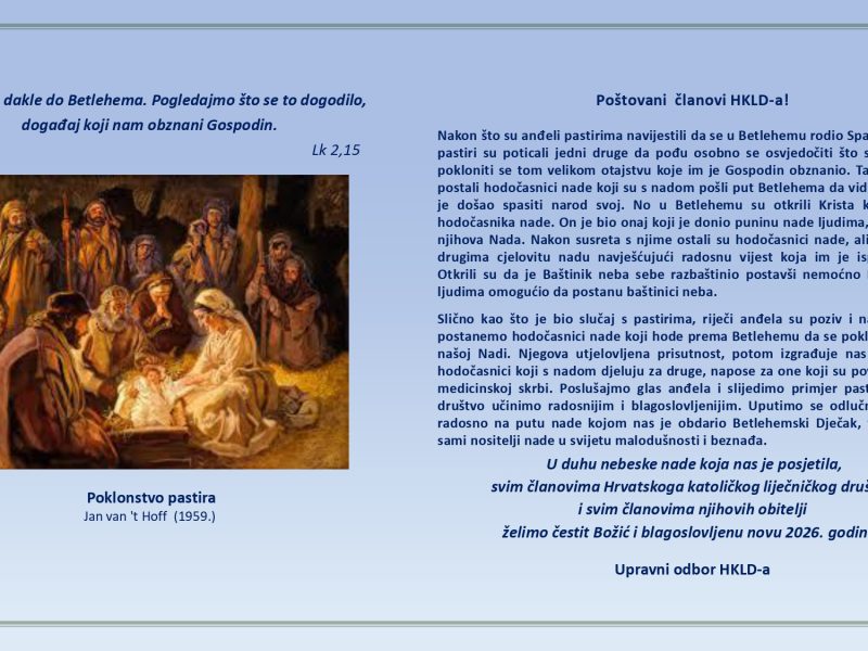 Poštovani članovi HKLD-a, Želimo vama i vašim obiteljima blagoslovljen Božić i radosne blagdane! Upravni odbor HKLD-a