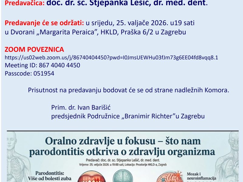 Osvrt na predavanje doc. dr. sc. Stjepanke Lešić, dr. med. dent.: Oralno zdravlje u fokusu – što nam parodontitis otkriva o zdravlju organizma Predava