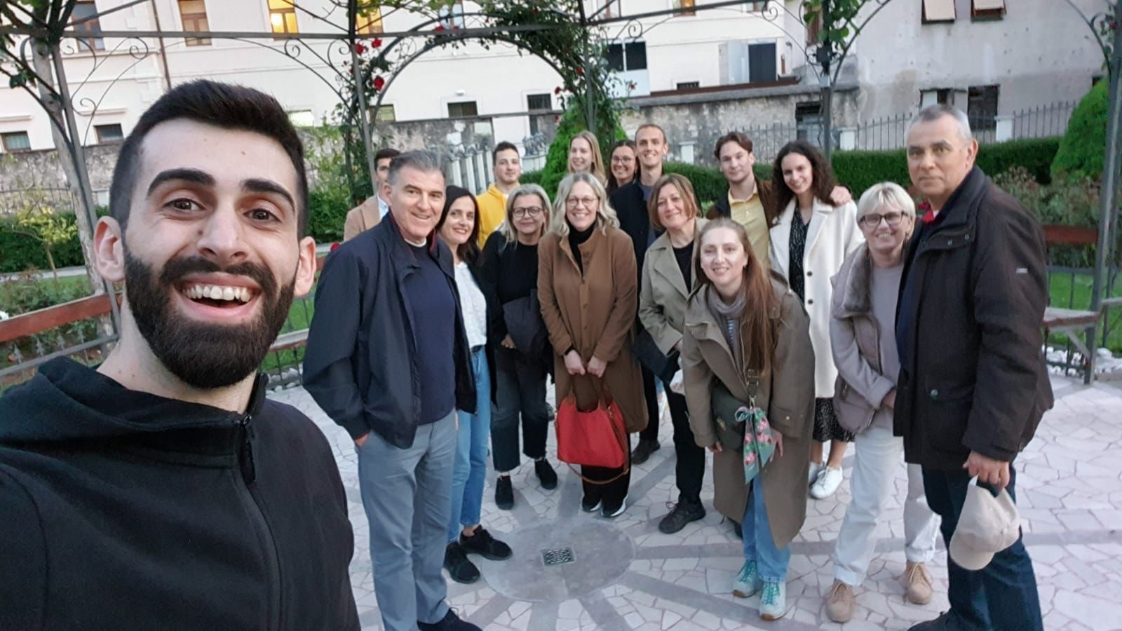 Poslije ručka, krenuli smo prema hotelu, a kako je predsjedniku Sekcije mladih HKLD-a bila gitara u ruci, odlučili smo malo zasvirati svim prolaznicima koji su toga dana imali sreću da prođu kraj nas. Lagana kiša spriječila nas je da nastavimo pjevački pohod po Tirani. U hotelu smo se osvježili i dočekali posljednji komadić slagalice, šlag na tortu: Isidoru iz Novog Sada koja nam se nije mogla pridružiti u četvrtak i petak, no odlučila je potegnuti sve do Tirane sama, na čemu smo joj vrlo zahvalni.