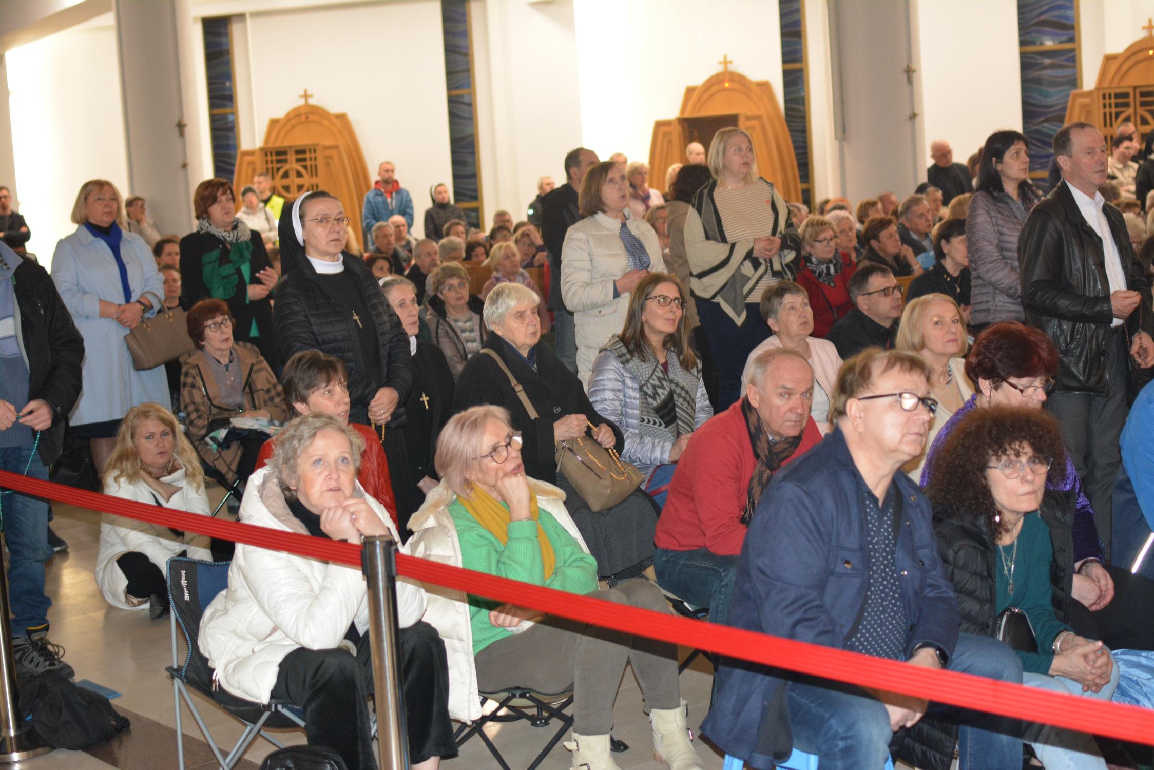 Uz moćan zvuk orgulja i još moćniji zvuk vjerničkog puka koji je zdušno molio i pjevao liturgijske pjesme na poljskom jeziku, hrvatski hodočasnici pridonijeli su ovom duhovnom naboju u Svetištu svojim skromnim molitvama izrečenim na hrvatskom jeziku. No iznenađenje i oduševljenje bilo je tim veće što smo među brojnim okupljenim vjernicima prepoznavali lica drugih hodočasnika iz Hrvatske jer članovi HKLD-a nisu bili jedina hodočasnička skupina koja se iz Hrvatske uputila u Krakov na proslavu Nedjelje Božjeg milosrđa. Iako je većina naših hodočasnika po prvi puta bila u Krakovu i ovom Svetištu, osjećali smo se kao kod kuće okruženi poznatim licima i vjernicima koji su jednako kao i mi bili oduševljeni proslavom ovog blagdana.