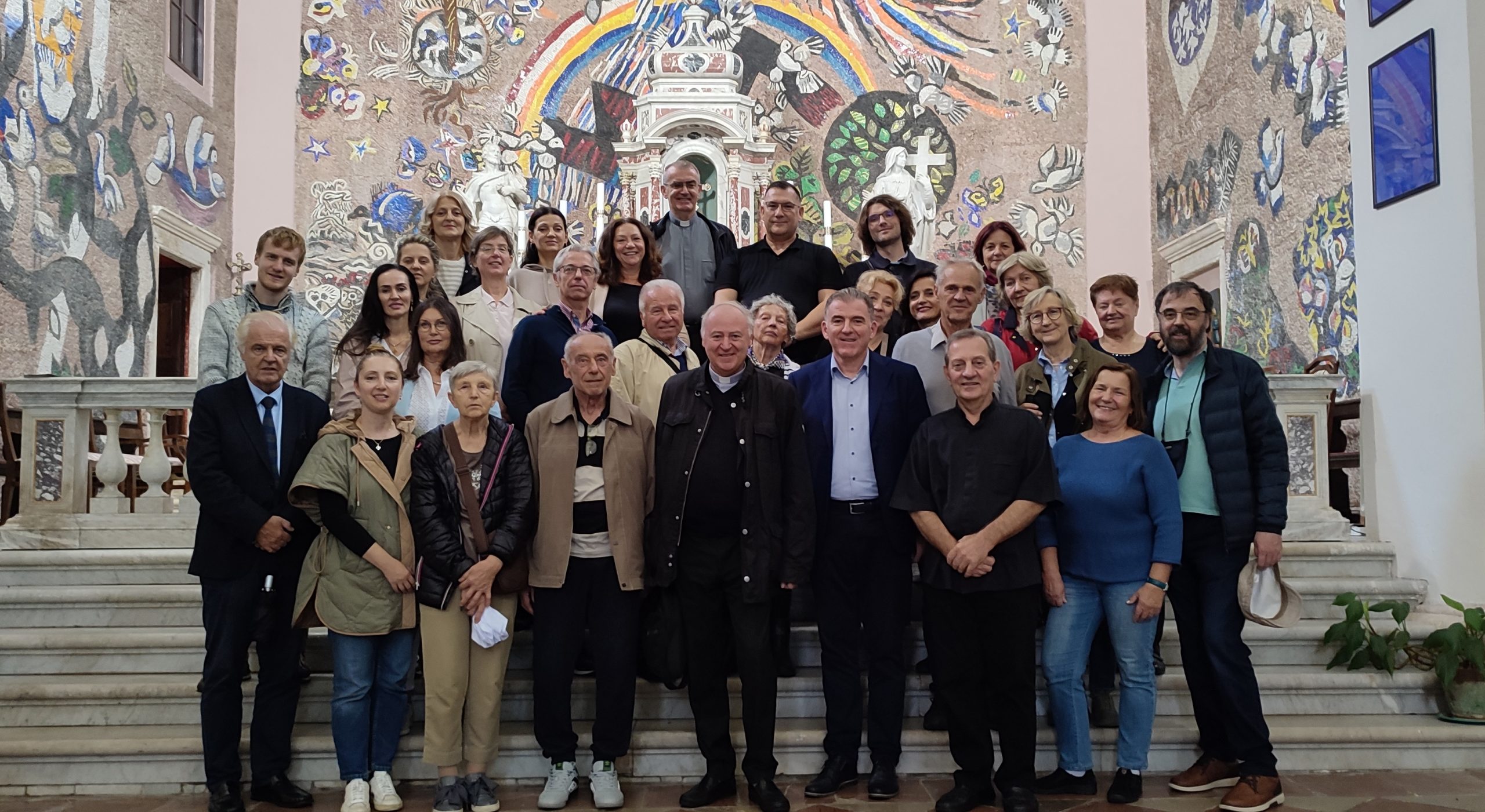 Mons. Renzo Pegoraro s članovima HKLD-a u župnoj crkvi sv. Eustahija u Dobroti, tijekom hodočašća u Boku kotorsku, zaljev hrvatskih blaženika i svetaca