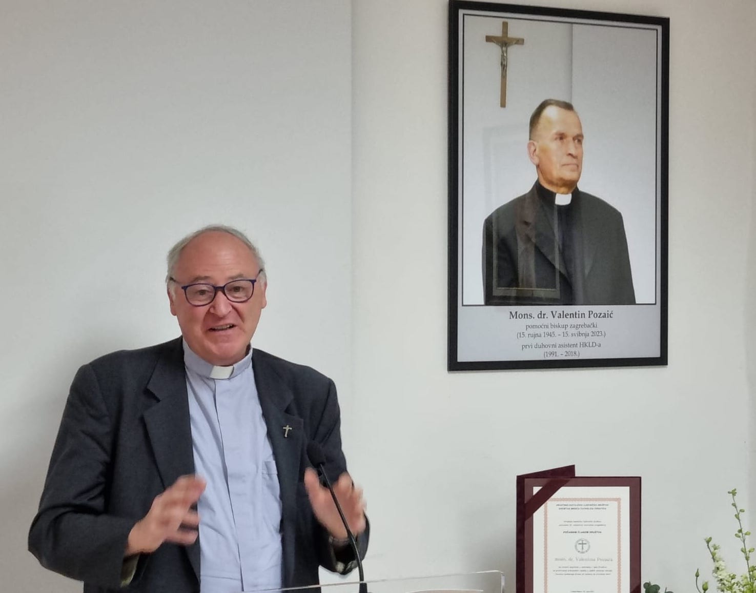 Mons. Pegoraro održao je prigodno slovo na komemoraciji za mons. dr. Valentina Pozaića, pomoćnoga biskupa zagrebačkog u miru i prvog duhovnog asistenta HKLD-a u Dvorani Margarita Peraica u sjedištu HKLD-a u Zagrebu