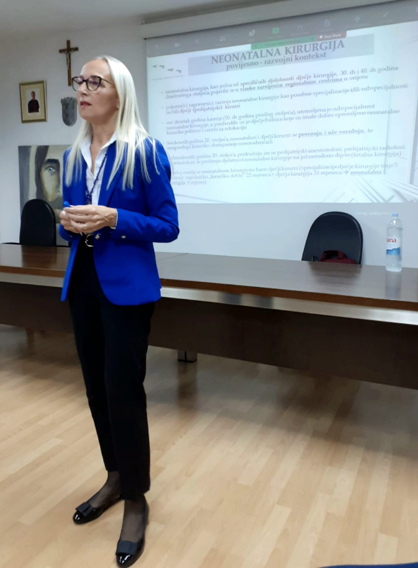 Na početku predavanja nazočnima se obratila prof. dr. sc. Vesna Lukinović Škudar, tajnica Podružnice, te predstavila nositeljicu teme, prof. dr. sc. Zoru Zakanj, pedijatricu i neonatoginju, koja se, radeći na složenim poslovima u tercijarnom perinatološkom centru, svakodnevno susreće s tek rođenom djecom kojoj je pri određenim stajnima ili bolestima nužna kirurška intervencija.